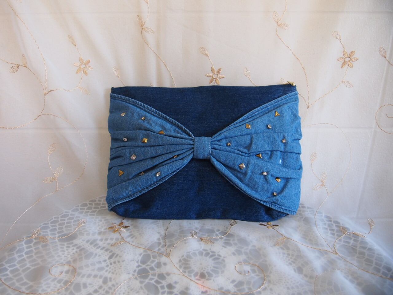 デニムリメイクリボンクラッチ ~by RMK ハワイアンキルトやデニムリメイクのハンドメイドショップ~
