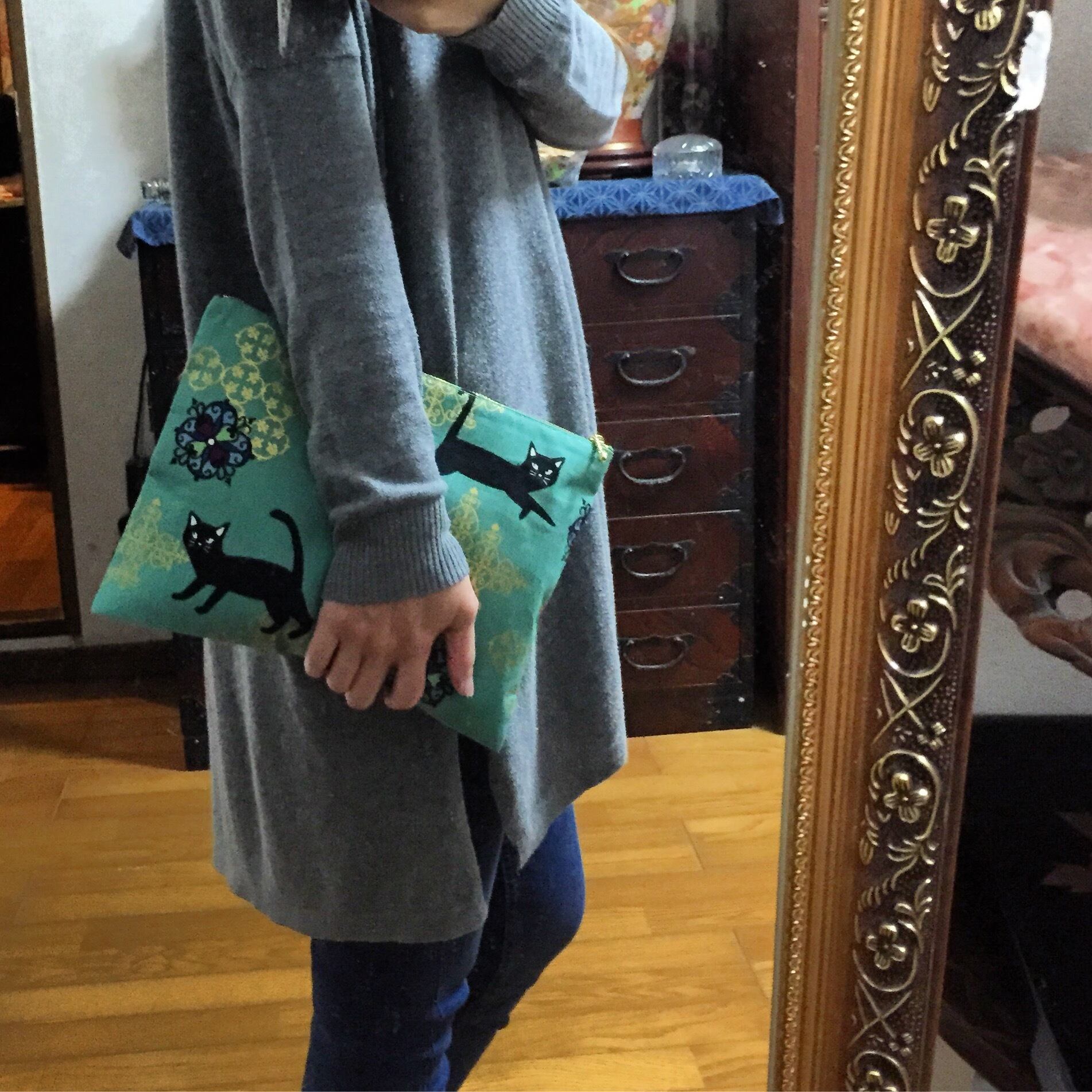 オリエンタル風の柄と猫柄のクラッチバッグ!