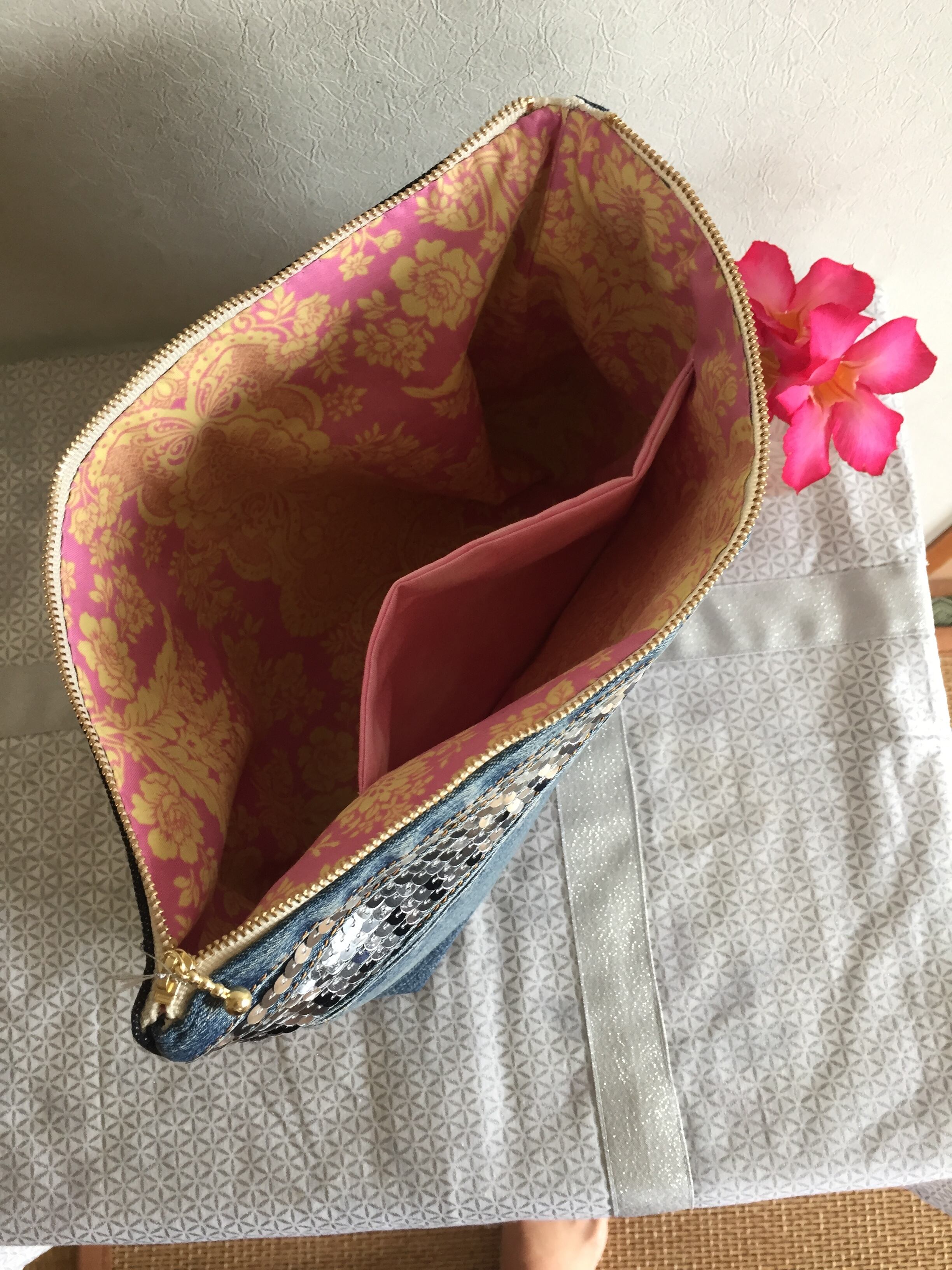 デニムとキラキラなスパンコールを合わせました。とってもシンプルなのにパッと目を惹くバッグ!